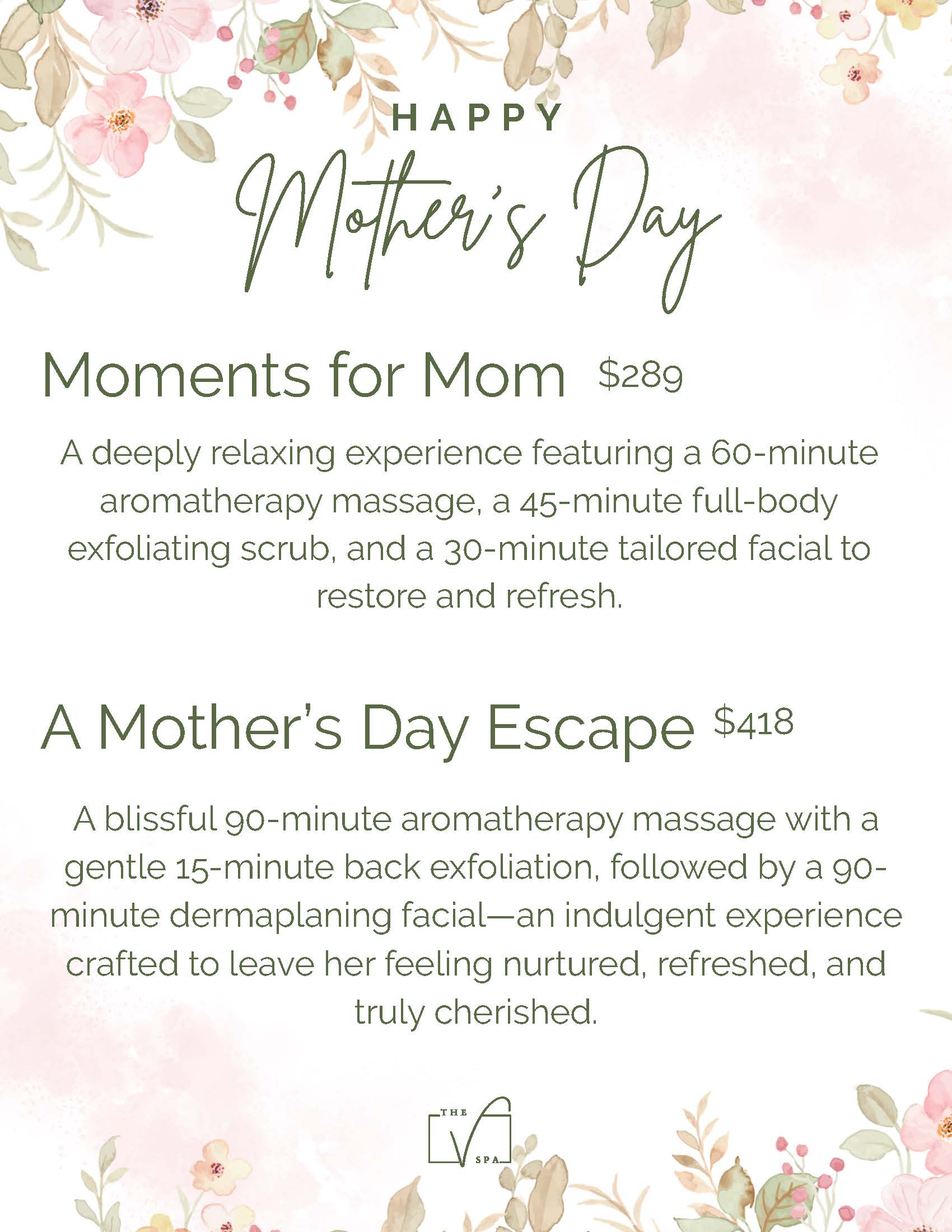 The V Spa Menu